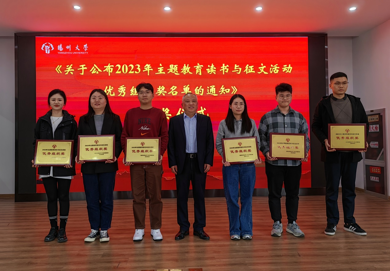 会议对获得2023年省教育系统关工委读书征文奖项的7名(一等奖2名、二等奖1名、三等奖4名)同学及获校优秀组织奖的6个学院颁发了奖状、奖牌。