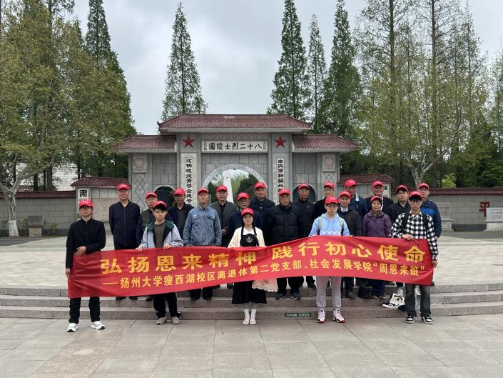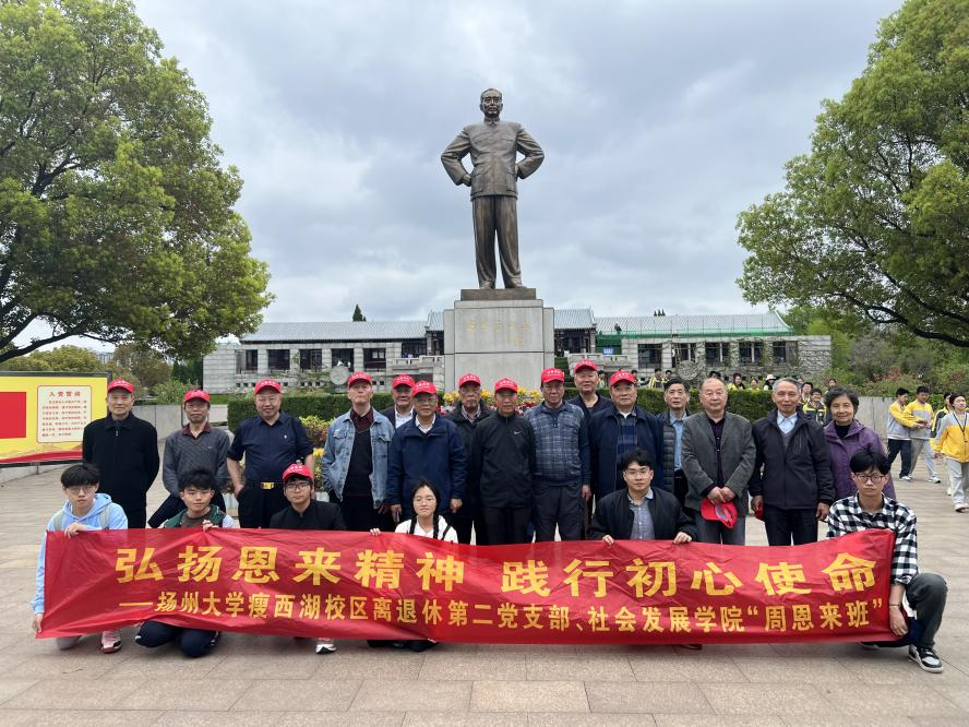 4月13日,社会发展学院关工委赴淮安举办“弘扬恩来精神 践行初心使命”主题党日活动。活动由瘦西湖校区离退休第二党支部书记、院关工委常务副主任曹金华主持,学院“周恩来班”学生代表、离退休老同志20余人参加了此次活动。