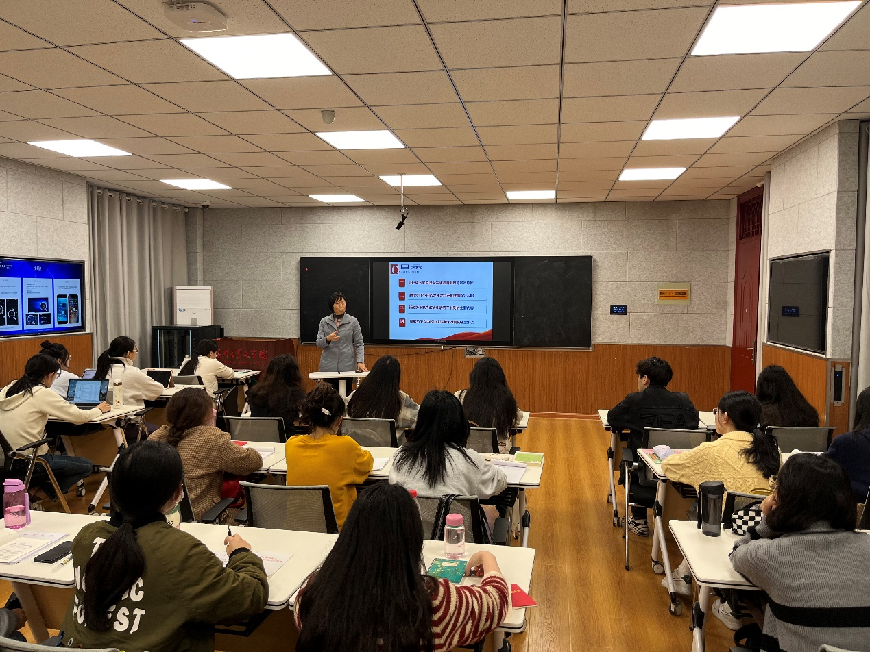 4月13日下午,文学院分党校在瘦西湖校区40号楼智慧教室举行2024年上半年发展对象短期集中培训班专题讲座。校关工委副主任赵春丹老师受邀为学员们解读《关于新形势下党内政治生活的若干准则》。