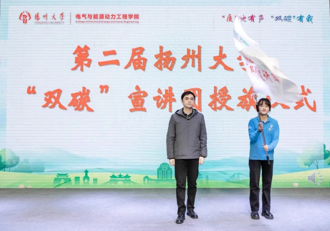 随后,举行了2024年度“双碳”宣讲团授旗仪式。刘斯文部长为扬州大学“双碳“宣讲团授旗。