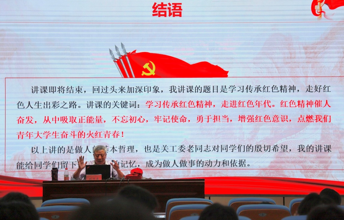 团课最后,刘老师对年轻的大学生寄予了殷切的期望。他希望大家能够从红色精神中汲取力量,不忘初心、牢记使命,勇于担当时代赋予的重任。同时,他也鼓励同学们增强红色意识,点燃青春的奋斗之火,将个人理想融入民族复兴伟大梦想,与时代同步伐、与人民共命运,让青春在强国建设、民族复兴的火热实践中绽放绚丽之花。