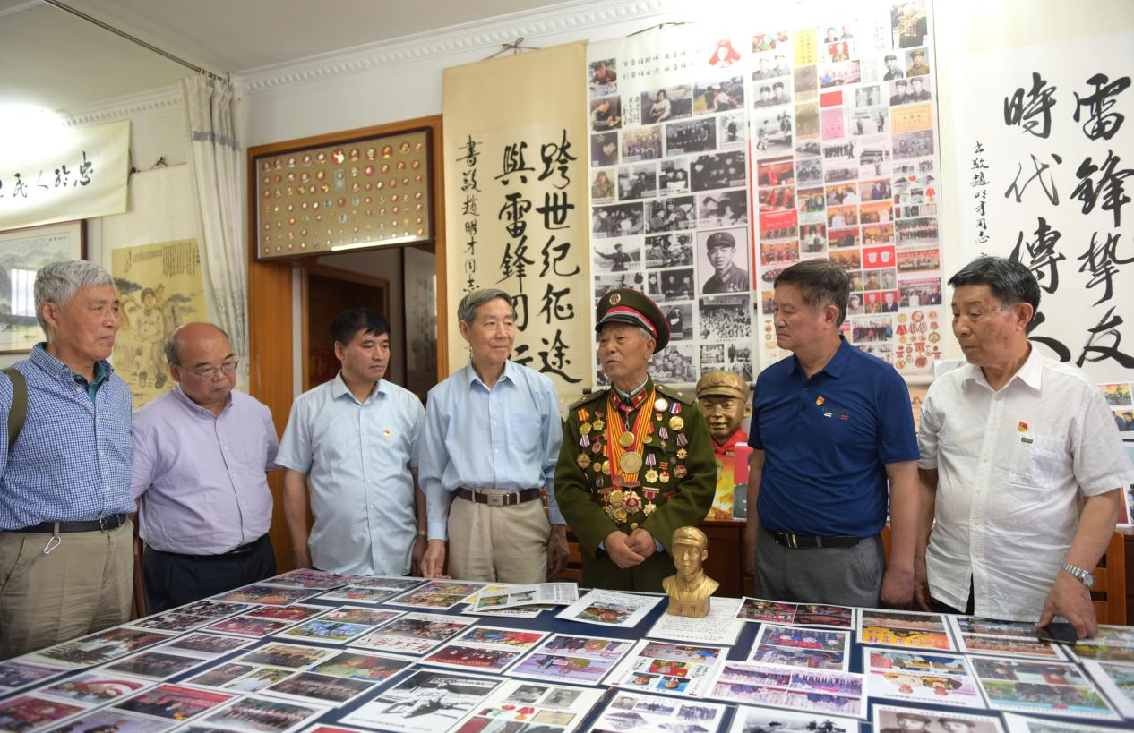 上午师生一行人首先来到溧水雷锋的战友赵明才老人家中进行访谈。89岁高龄的赵老一身戎装,胸前挂满奖章神采奕奕。在满屋有关雷锋资料图片和字画的客厅,赵老用亲身经历为大家讲解雷锋同志的事迹,言语精练朴实、真实生动感人。赵老还向每人赠送亲笔签名的《雷锋画集》。随后,大家来到大金山雷锋文化馆。赵老冒着高温在一件件珍贵文物前坚持亲自讲解雷锋的事迹,并在雷锋塑像前和大家一起合影留念。
