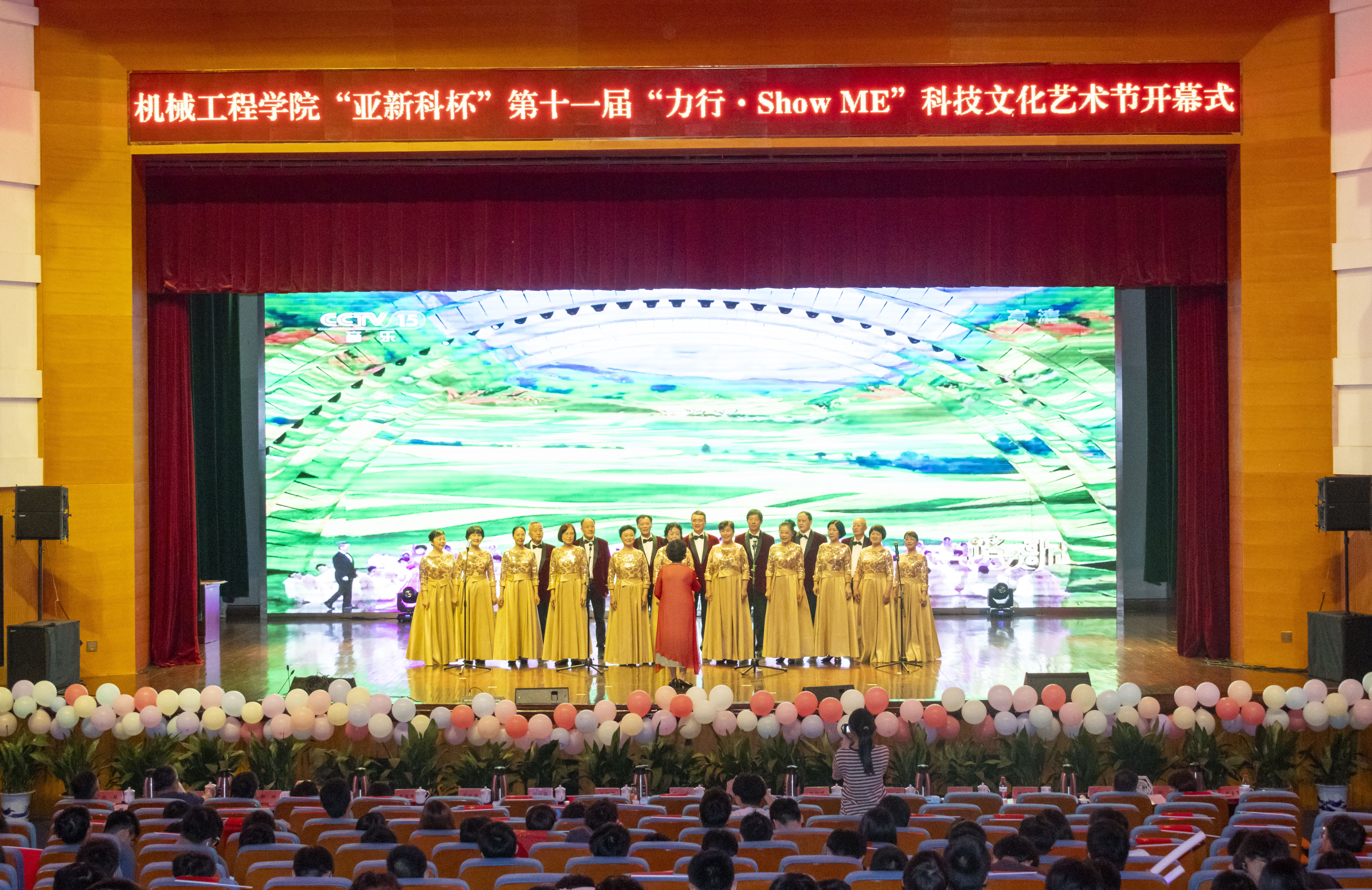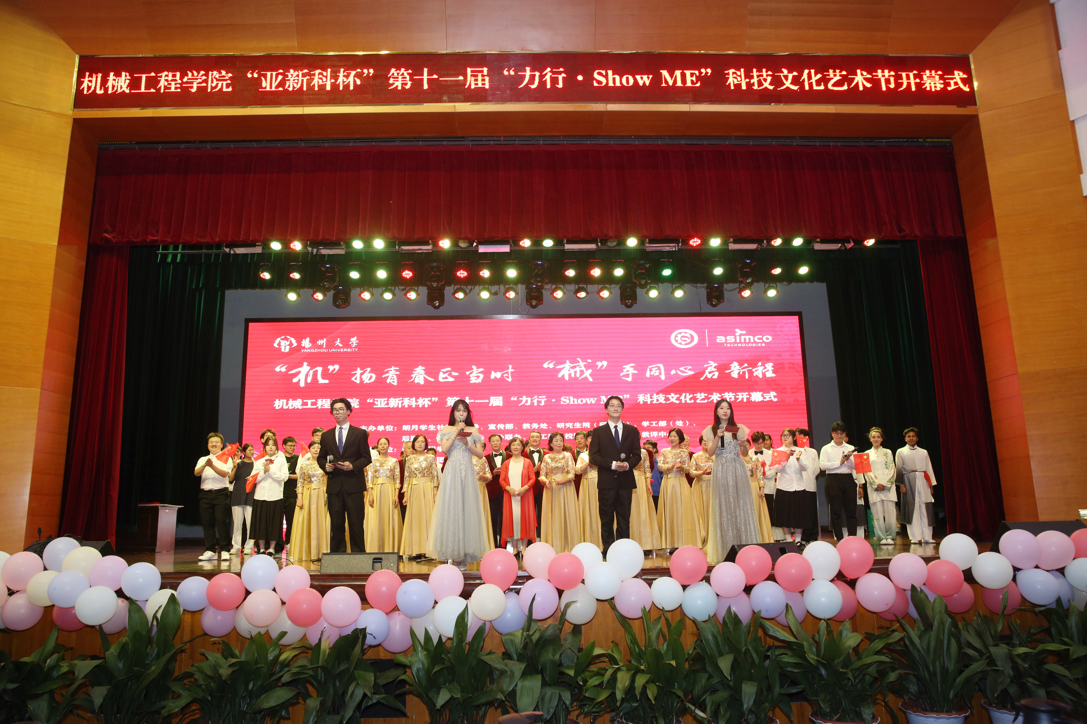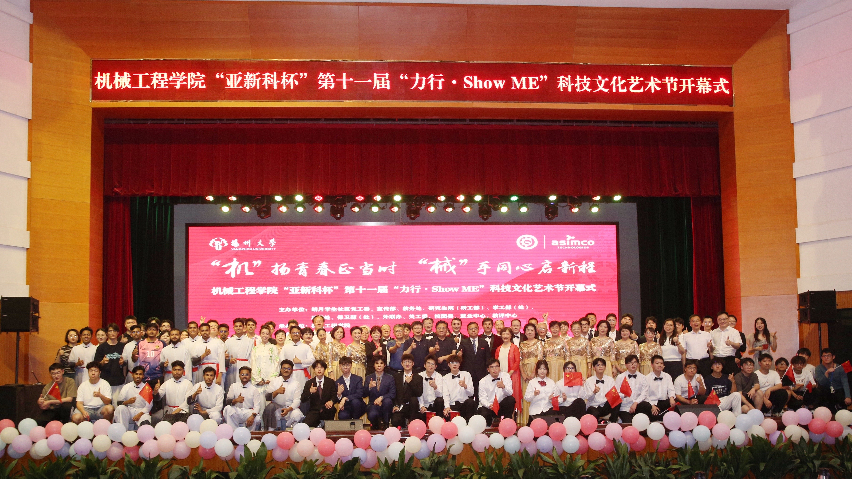 5月26日晚,机械工程学院于扬子津校区文体馆三楼小剧场举办“亚新科杯”第十一届“力行·Show ME”科技文化艺术节开幕式。学院邀请校老干部艺术团、路北校区离退休总支、共建班级结对老同志参与此次开幕式。校长丁建宁,校党委常委、副校长蔡颖蔚,校党委办公室(保密办公室)主任王军,校长办公室主任龚俊杰,校教务处处长严长杰,校党委研究生工作部部长吴刚,校团委书记陈佩沛,校就业指导中心主任陈轶群,校教育教学评估中心主任郑刚,校党委学生工作部(处)副部(处)长张平,校后勤保障处党委委员纪委书记桑冬平,亚新科、扬力、亚威、保来得等校友企业代表,全体院领导、系主任、辅导员参加活动。