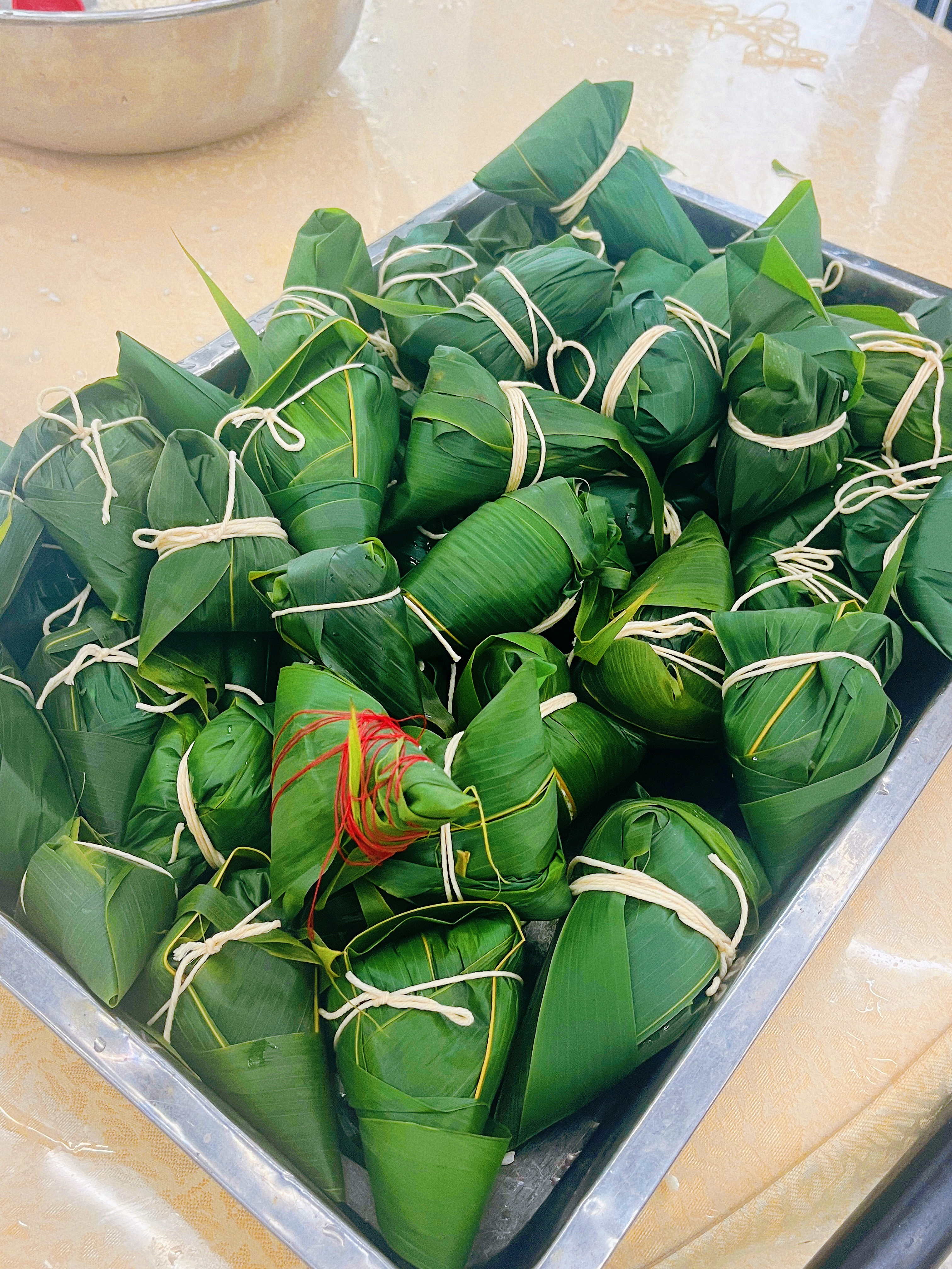 包粽子和制作香包是此活动的两个主要流程,活动负责人将同学们分成若干小组,提供活动所需材料。关工委老教师耐心地指导学生:“把粽叶折叠成漏斗形状,放一些糯米和红枣,最后系上活扣。”大家在轻松的氛围下很快就完成了包粽子的任务。