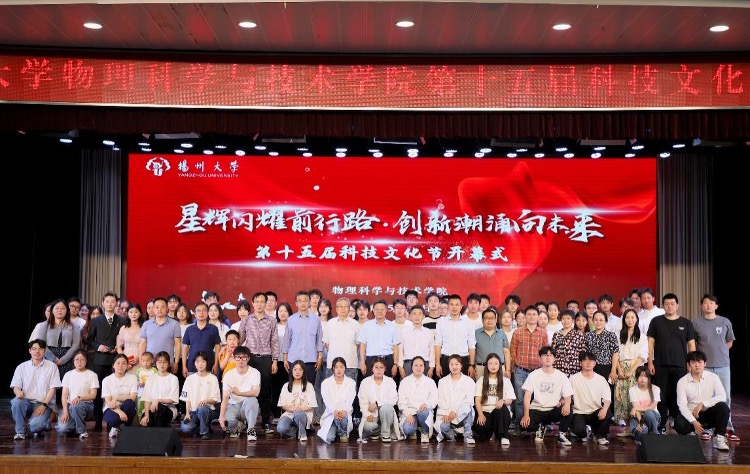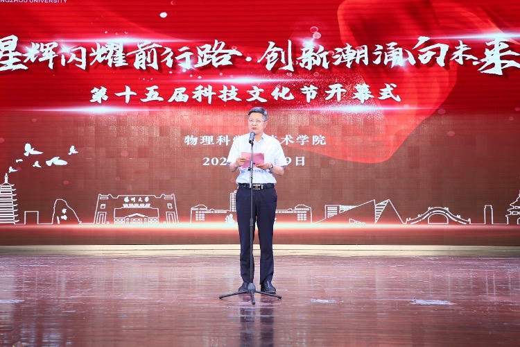 近日,物理学院在荷花池校区大学生活动中心三楼小剧场举办了第十五届科技文化节开幕式。院党委书记王春雨,院长涂育松,院关工委常务副主任顾长华,院关工委副主任陈庆琉,院党委副书记毕瑜林,副院长王伟,副院长王健以及学院各党支部书记,各系部中心主任,院办公室、团委老师,本研学生代表参加活动。