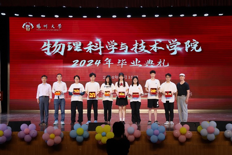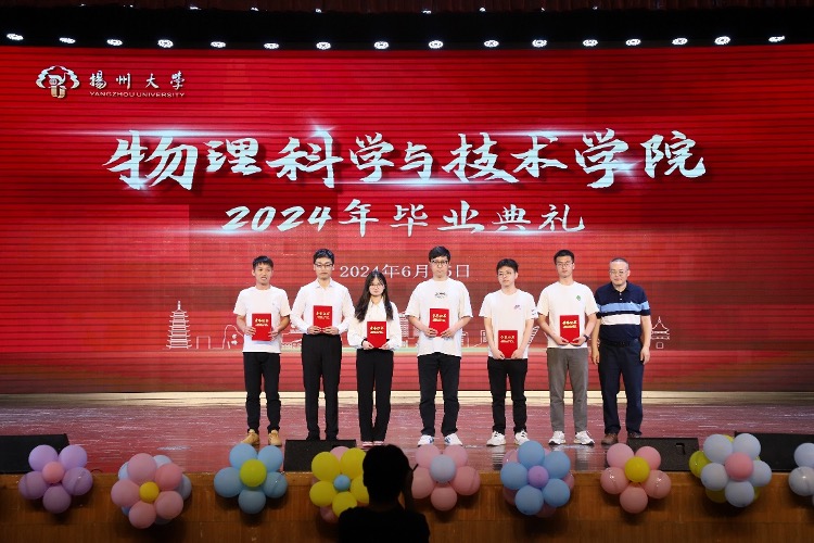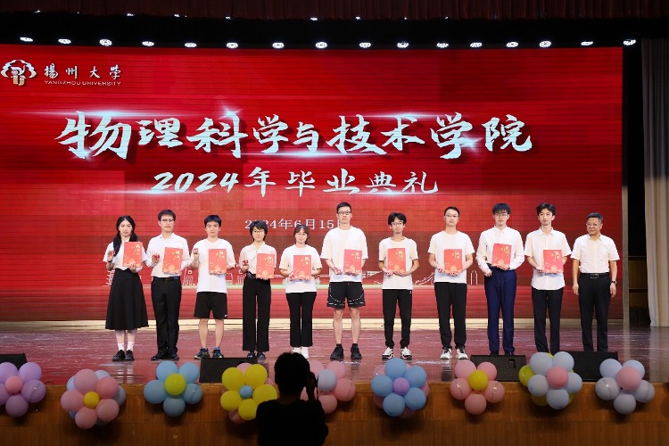 近日,物理学院2024年毕业典礼暨“廿廿不忘,与'理’情长”欢送2024届毕业生晚会于荷花池校区大学生活动中心三楼小剧场隆重举行。院党委书记王春雨、院长涂育松、院关工委常务副主任顾长华、院关工委副主任石竹南、副院长王伟、副院长王健、学生家长代表、各系部主任、全体毕业班班主任、导师代表、院行政、团委老师以及2024届全体毕业生参会。毕业典礼由院党委副书记毕瑜林主持。