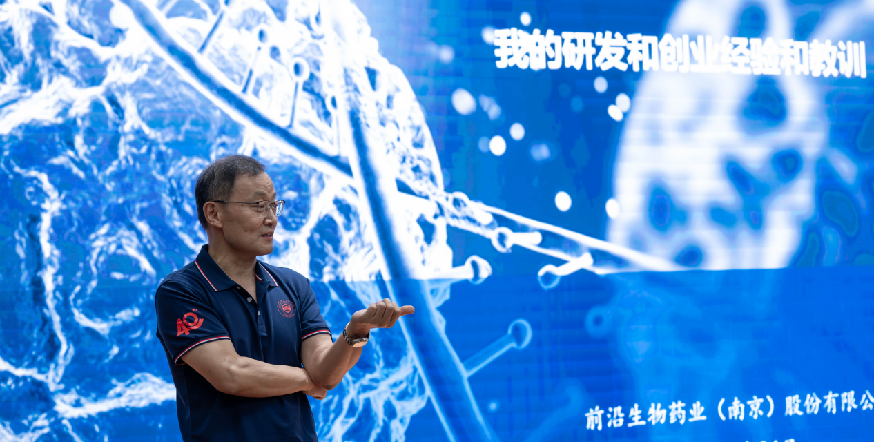 前沿生物药业(南京)股份有限公司董事、首席技术官陆荣健博士作题为“四十年在科研和创业道路上的一点体会”创新创业报告。报告会上,陆荣健首先回忆了自己在母校求学经历,表达了对母校的感激之情。接着,他向同学们介绍自己和团队在研制抗艾新药、带领前沿生物磨砺22年成为抗艾新药领军企业的创业艰辛历程,并分享了科研与创业的心得体会。他勉励同学们,在科研和创业路上要不忘初心,敢为人先、敢于挑战权威,要总结文献和前人的经验教训,要大处着眼、小处着手,要培养严谨的科学研究精神和习惯,要循序渐进,一步一个脚印,勇攀科学高峰。