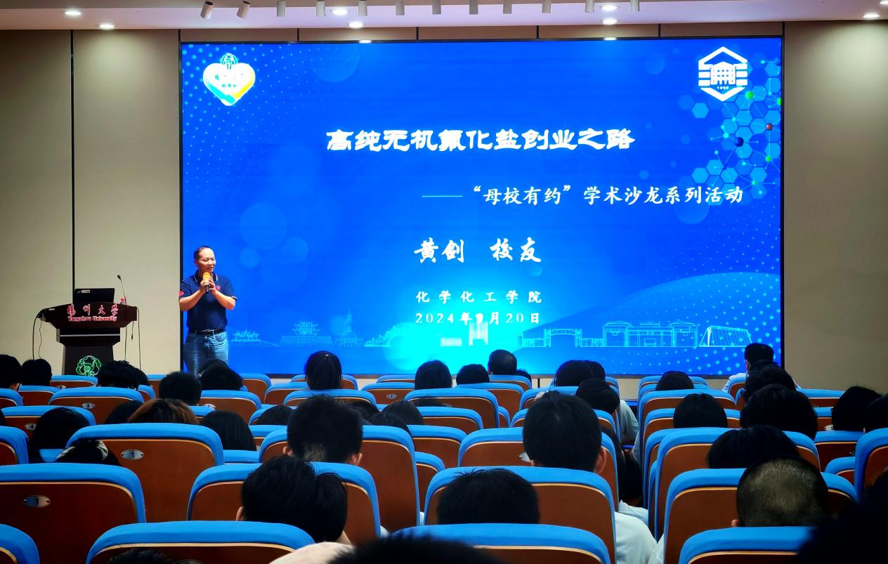 甘肃通试科技有限公司总工程师黄剑作题为“高纯无机氟化盐创业之路”创新创业报告。黄剑在报告中追忆了在母校求学的美好时光,并回顾了大学毕业后任教、办厂、成立公司的难忘经历,有过艰辛、有过汗水、有过欢笑,不变的是执着的追求、对化工研发的热爱。他指出,创业最重要的两件事就是“做人”和“做事”,好的创业者须具备奉献精神,愿意牺性个人享乐来追求更大的目标与满足感。他激励同学们要具备“多奉献,少获取”的素养,还要有“野心”和“决心”、“目标”和“行动”、“团队“和“威信”。