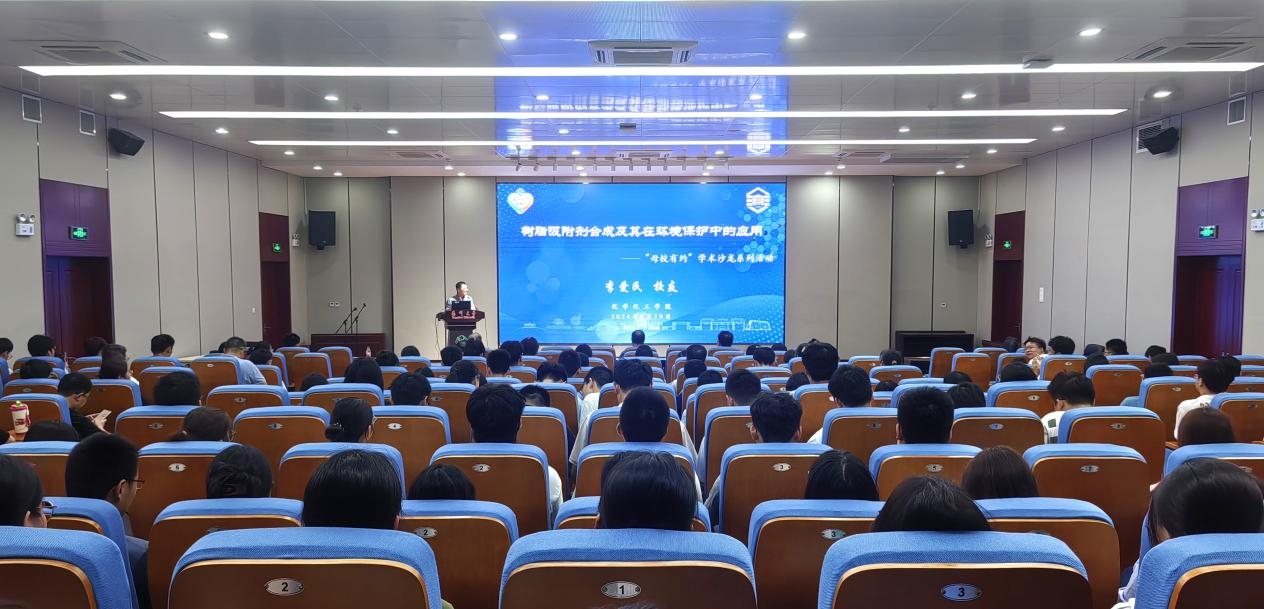 国家首批“万人计划”科技创新领军人才、长江学者、国家杰出青年基金获得者、南京大学环境学院李爱民教授作题为“树脂吸附剂合成及其在环境保护中的应用”的精彩报告。在报告中,李爱民教授首先回忆了自己在母校学习生活的点点滴滴,对母校的培养、老师的帮助表示感谢。随后,他从树脂吸附剂的发展历程、树脂处理工业有机污染物及其资源化、数值分离水体微/痕量杂质及其资源化、树脂处理技术未来发展探索与思考等四个方面对其团队研究与成果的实际应用进行介绍,还结合自身求学与科研历程,生动诠释了化学对于生产生活、科学研究的重要作用,以及在发展新质生产力和推进中国式现代化进程中的基础性作用。他深情寄语同学们,要做眼界宽、思路宽、胸襟宽,有信念、有本领、有担当、有正气的三“宽”四“有”新时代扬大人。