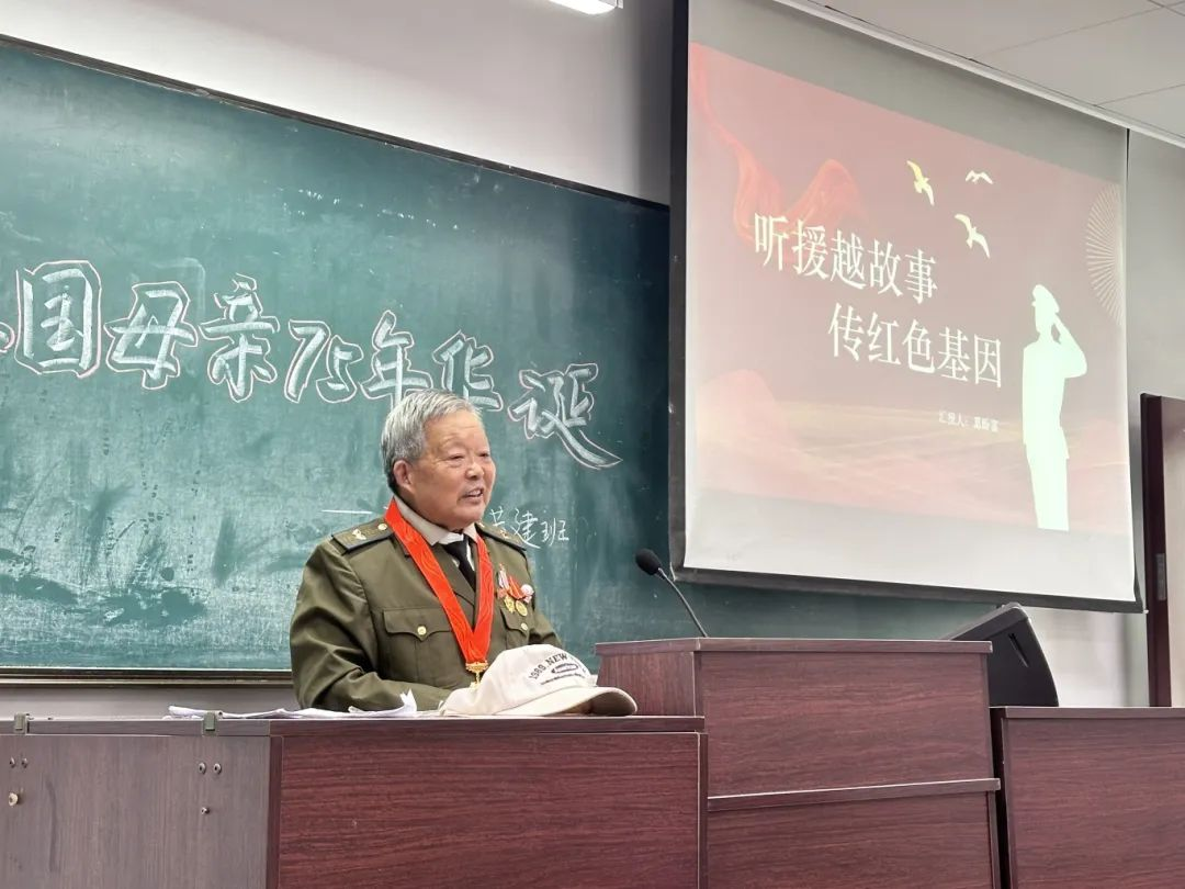 葛盼富老师以自己的亲身经历,讲述了抗美援越战争中的的感人故事。他的话语铿锵有力,深深打动了在场的每一个人,使同学们对历史与国家安全有了更加深刻的理解。他说,青年学生应该铭记历史,守护红色江山,听从党和人民的召唤,把爱国之心更好地化为报国之行,为中国式现代化挺膺担当。