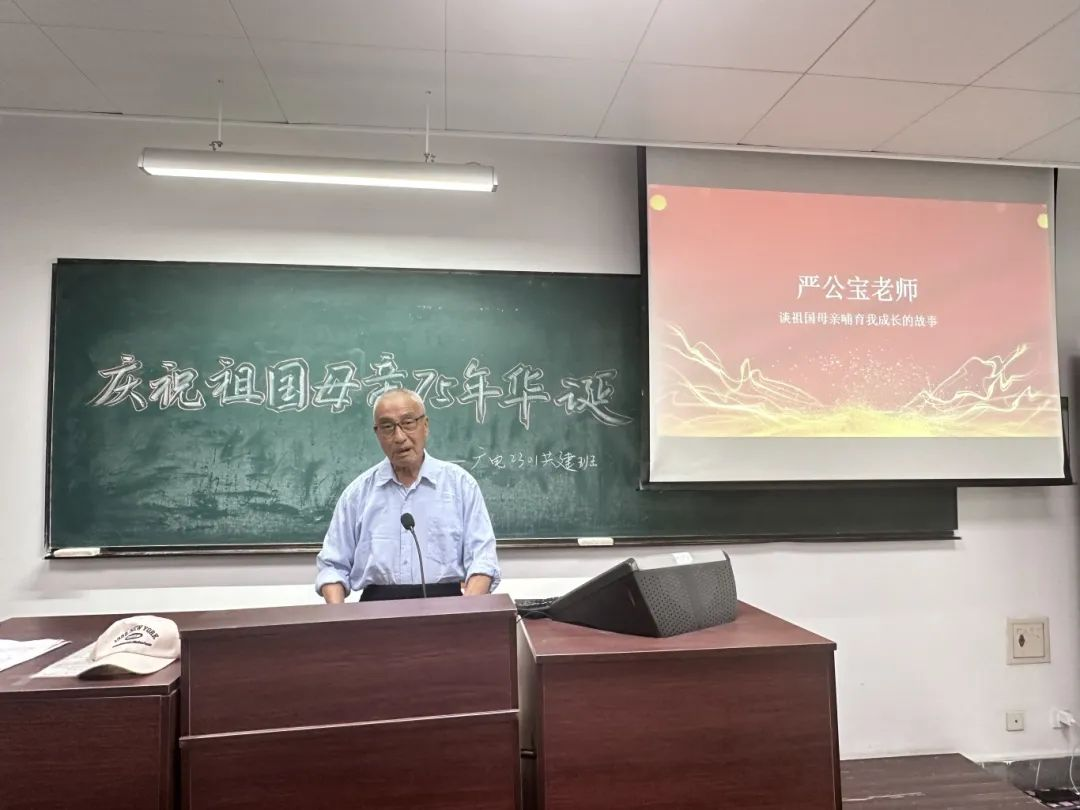 严公宝和孙放老师分别分享了他们眼中祖国母亲哺育我们成长的故事。他们以亲身经历和真挚情感,将自己所经历的从落后贫穷,到富裕强大的社会生活变化历程娓娓道来,使同学们更加深刻地感受到近几十年来中国共产党领导全国各族人民不屈奋斗、不断进取的伟大精神。他们强调,广大青年应继承和发扬吃苦耐劳、自力更生、艰苦奋斗的光荣传统,勇于战胜前进道路上的一切艰难险阻,用青春和汗水创造出让世界刮目相看的新奇迹。