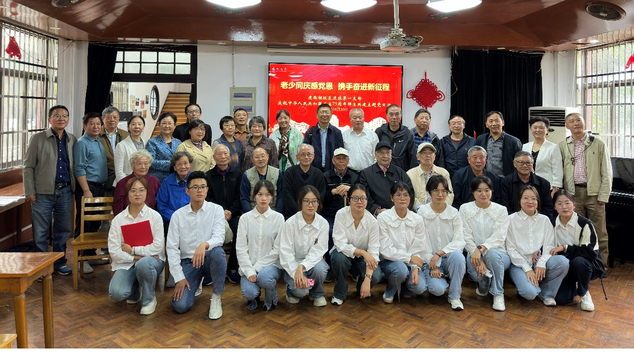 10月10日下午,文学院“洪宗礼班”开展 “老少同庆感党恩 携手奋进新征程”一一庆祝中华人民共和国成立75周年师生共建主题党日活动。活动邀请了校关工委理论宣讲组成员顾瑞漒教授做主题讲座,中文2201洪宗礼班的党员和入党积极分子全程聆听了讲座。