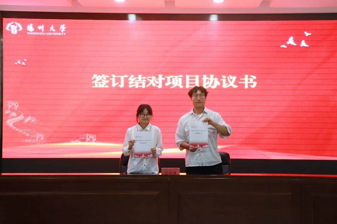随后,“一维LC振荡电路中的拓扑物态模拟及特征探测”项目导师祁鲁老师与揭榜学生代表刘诗音同学正式签订了结对项目协议书,标志着双方将携手并进,共同探索科学未知,期待在未来取得丰硕成果。