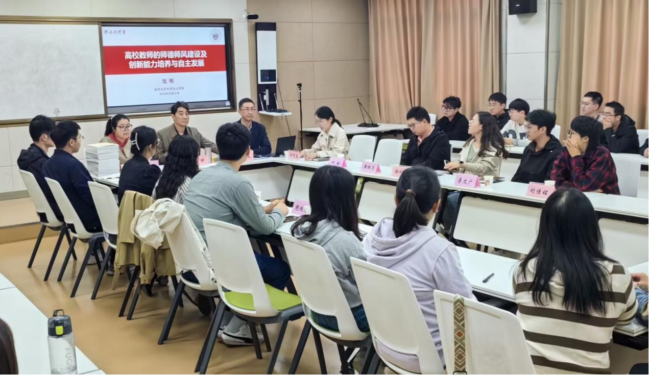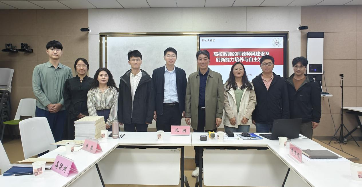 讲座中,沈明老师从什么是“大学”和“大学精神”、高校教师师德师风建设的演进历史、高校教师师德师风与创新能力培养等方面作了深入浅出的解读,并结合自身自主发展、教书育人和科研工作体会,分享高等院校青年教师自主发展的建议与措施。他指出,青年教师是高校教师队伍中最年轻、最有朝气的新生力量,也是高校科研队伍中最积极、最活跃、最重要的生力军,是高校可持续发展的基础。他强调,青年教师要把学校发展的愿景作为自我发展的部分加以认识和吸收,从“要我发展”转变为“我要发展”,并更加积极地行动,珍惜学校提供的各种平台以主动寻求自我发展。