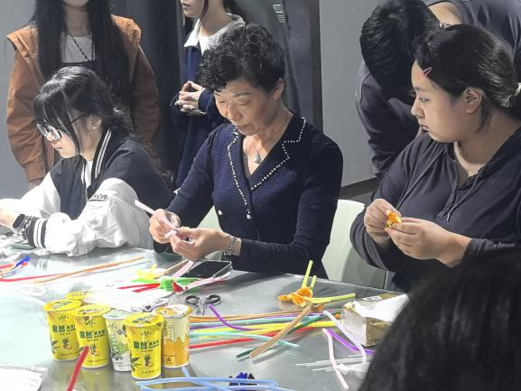 活动现场,气氛活跃,老少欢聚一堂,共庆重阳。本次活动分为三个部分,首先开展了“扭扭棒手工体验活动”,同学们和老教师发挥各自的想象力和创造力,将色彩斑斓的扭扭棒制作成花朵的形象并将花束送给老教师们,为老教师们带来了温暖与快乐。