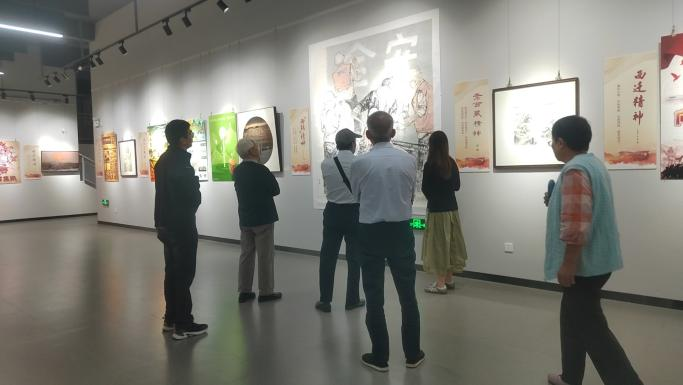 最后,学院邀请老教师们前往扬州大学美术馆观看“中国精神——中国共产党人的精神谱系美术设计作品展”,同学现场为老教师们进行解读作品,共同探讨艺术的魅力。