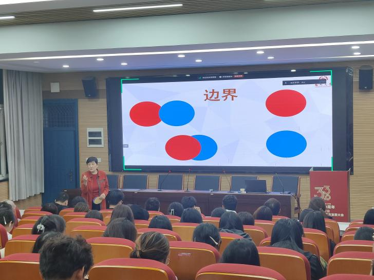 在讲座的核心环节,罗老师运用幽默风趣的语言阐述了人际关系的含义和重要性。罗老师还通过生动形象的道具演示详细讲解了人与人之间的边界,并结合大学生活中常见的人际关系问题案例,引导同学们如何运用共情能力和一致性沟通技巧来解决这些问题。