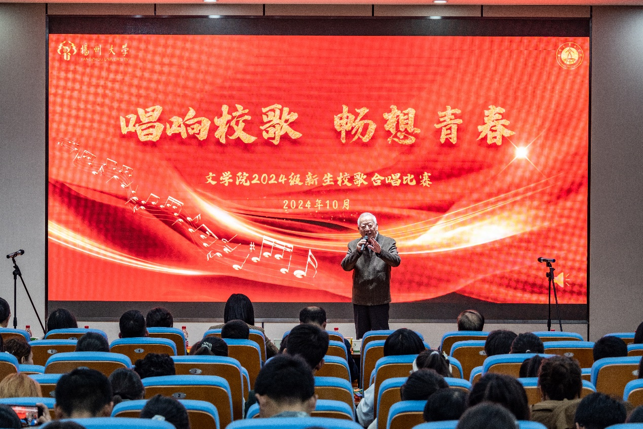 10月23日晚,文学院在瘦西湖校区8号教学楼S405报告厅举办了“唱响校歌 畅想青春”2024级新生校歌合唱比赛。比赛邀请了学院党委书记李怀军老师、学院党委副书记张茜老师、学院关工委常务副主任班吉庆老师、学院关工委委员谢明老师、马宏柏老师担任评委,2024级新生班主任和全体辅导员出席了本次活动。