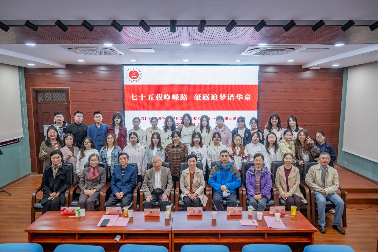11月13日下午,“七十五载峥嵘路 砥砺追梦谱华章”——瘦西湖校区离退休党总支第一党支部与“洪宗礼班”中文2201共建活动在文科楼中敏报告厅成功举办。文学院党委副书记、院关工委主任张茜,瘦西湖退休第一党支部书记姚蔚和委员庞咏兰、袁玫玫、邱林,院关工委常务副主任班吉庆,院关工委委员王乃森、谢明、董进以及“洪宗礼班”全体师生出席本次活动。