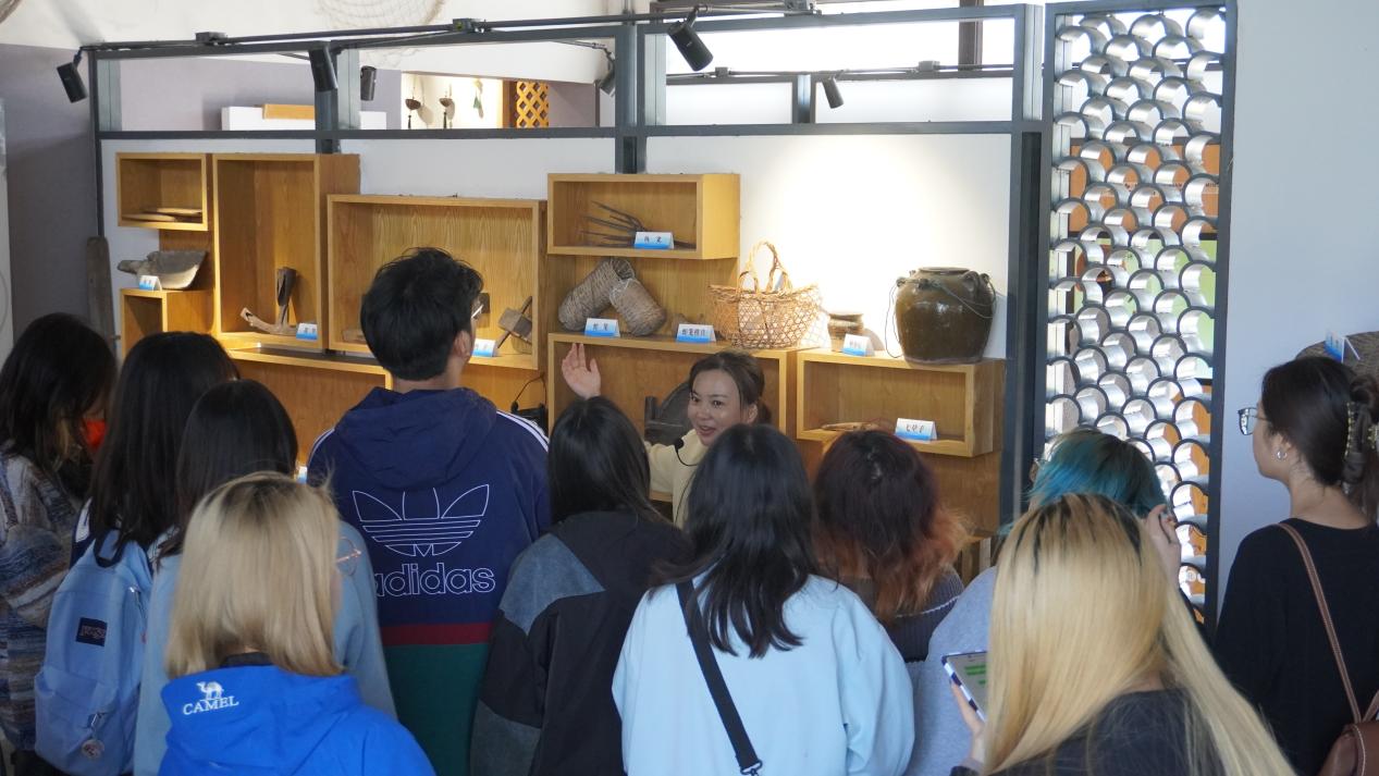 随后,同学们来到了扬州方巷镇沿湖村。沿湖村是一个典型的偏远渔村,近年来,在党的扶贫政策下,村庄的面貌发生了翻天覆地的变化,一跃成为全国脱贫攻坚模范村。同学们参观了沿湖村的扶贫项目,了解了当地渔民如何在政府的帮助下,摆脱贫困,走上致富道路。同学们认真聆听讲解员讲述本村的渔文化历史,以及近年来村民艰苦奋斗取得的令人瞩目的发展成果。同学们还观看了记录渔村发展历程的图文、视频、实物,体验结网等渔具制作活动,领略渔旅融合独特魅力的同时感悟沿湖村艰苦创业精神,对我国的扶贫工作有了更深刻的认识。