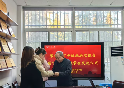 会上,三名受表彰学生依次汇报个人成长状况,分享入学以来在专业学习、生活日常、学生工作等方面的经历和收获。詹玉铸老师向三位同学发放丁香励志奖学金,讲述该项奖学金是关工委老同志自行募集、给予优秀的丁香班学子的补贴,他提醒受到表彰的三位同学要合理妥善利用这一笔蕴含着老同志无限关怀的奖学金,勉励她们砥砺前行,勤奋刻苦,不断提升自我,书写青年人的价值。高延安老师强调,同学们要心怀感恩在班级、组织中发挥带头模范作用。同学们要多思考自己和班级的未来,为创建更好的班集体贡献力量。最后,詹玉铸老师用丁香班班风“团结、友爱、勤奋、创新”,寄语同学们传承发扬丁香班优良传统。