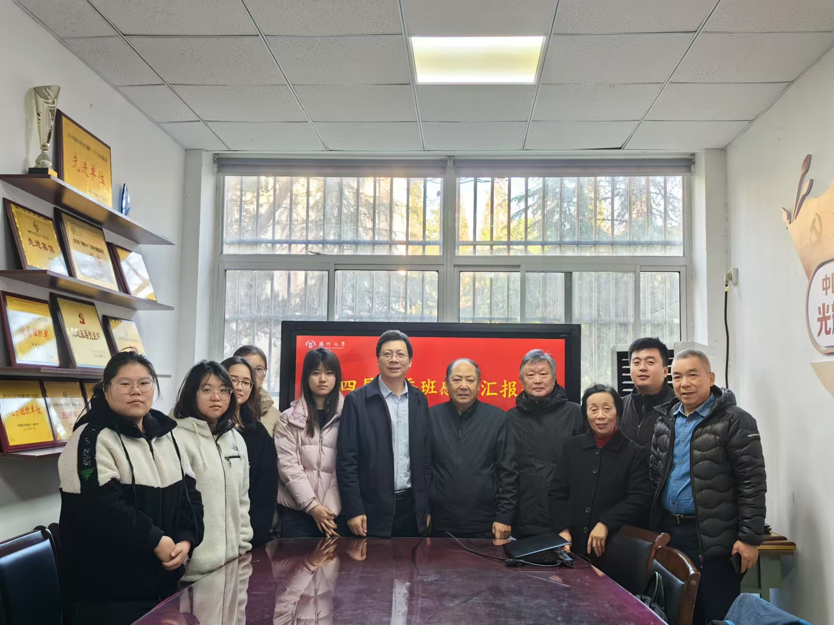 为表彰我院优秀学子,传承并发扬丁香精神,11月28日上午,我院在商经楼112会议室开展第四届丁香班感恩汇报会暨丁香励志奖学金发放仪式,关工委詹玉铸老师、朱家生老师、张国林老师、王兆珠老师,院党委副书记高延安老师、辅导员王星茗老师以及第四届丁香班——统计2201班班长、团支部书记、受表彰学生参加了本次会议。