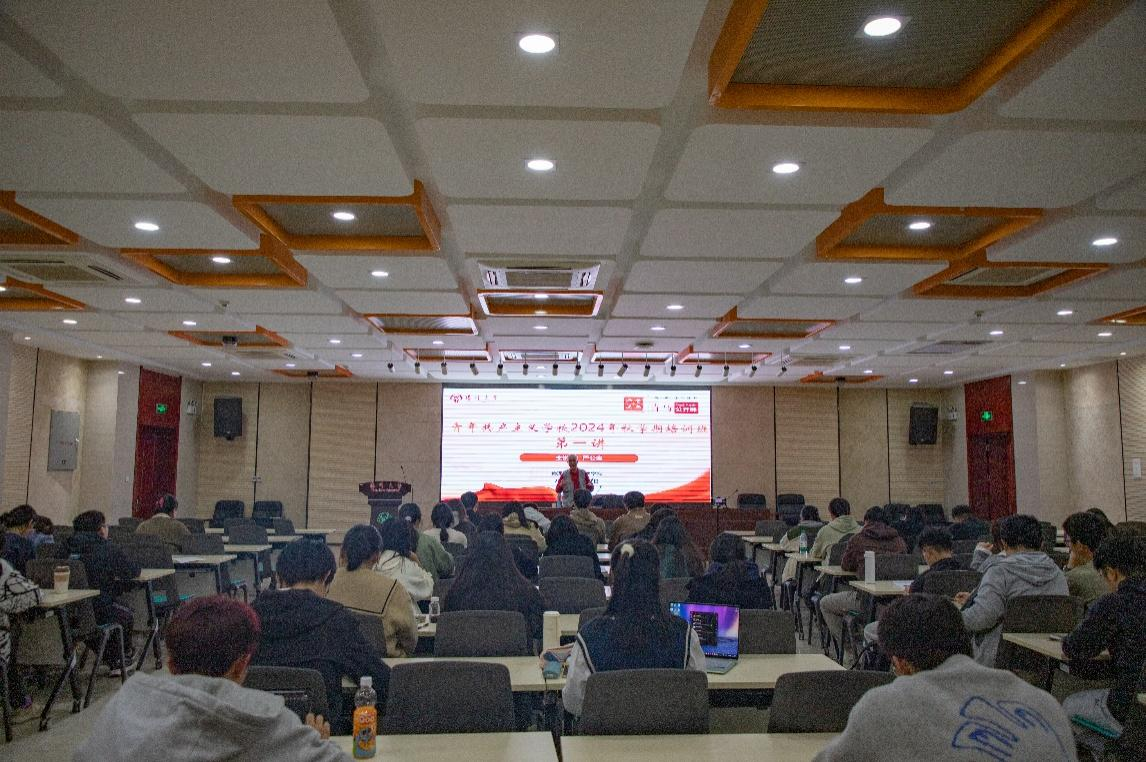 为进一步增强我院青年的理论素养与综合能力,深化我院的思想政治教育工作,11月11日,我院邀请到了校关工委理论宣传组严公宝老师于瘦西湖校区8号楼S205教室,成功举办了青年共产主义学校2024年秋学期培训班第一讲。本次团课面向2024年10月份班级推优选拔出的所有同学,团课由我院23级辅导员许武韬老师担任主持。
