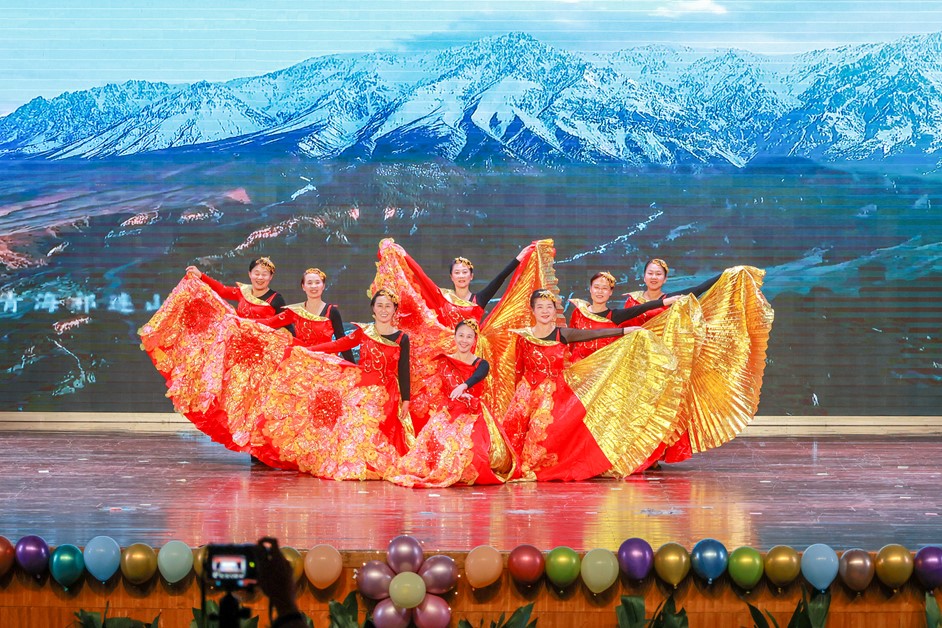 院关工委崔茵、耿建平、洪霞、姜继红、陈娟、李燕、陈志奇、杨秀芳老师带来舞蹈《春风十万里》,为此次科技文化艺术节闭幕式做开场舞表演。