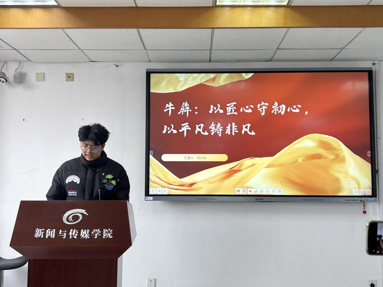 交流会上,10位学生代表结合精心制作的PPT与视频素材,深情讲述了不同领域的感动中国人物事迹。分享内容涵盖科学家、教育工作者、基层干部、医疗工作者等不同领域:从以信仰为火点燃“中国精度”璀璨星河的俞鸿儒院士,到扎根深山用教育点亮女孩梦想的张桂梅校长;从隐姓埋名投身核潜艇研究的彭士禄院士,到踏破山海用镜头击破贫困偏见的主持人陈贝儿……同学们通过生动的语言和真实的故事细节,还原了榜样人物在平凡岗位上创造的不凡成就,展现了他们心怀家国、无私奉献的精神品格。