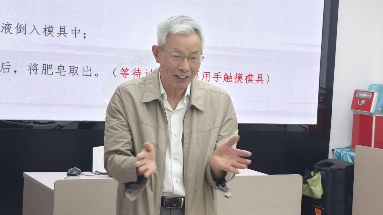 活动当日,阚老师与志愿者提前抵达现场。阚老师仔细检查实验器材、听取预实验汇报后,凭借丰富的经验,将制作手工皂的加热方式由直接加热改为水浴加热,有效规避预实验中出现的问题,为实验安全与成功保驾护航。同时,阚老师亲切地与提前到场的小朋友交流,从日常生活用品切入,深入浅出地讲解化学知识及其意义,迅速拉近与孩子们的距离。