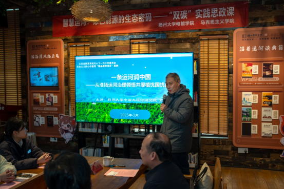 在古色古香的三湾城市书坊内,一堂《从淮扬运河治理领悟忧国爱民情怀》的主题思政课拉开序幕。