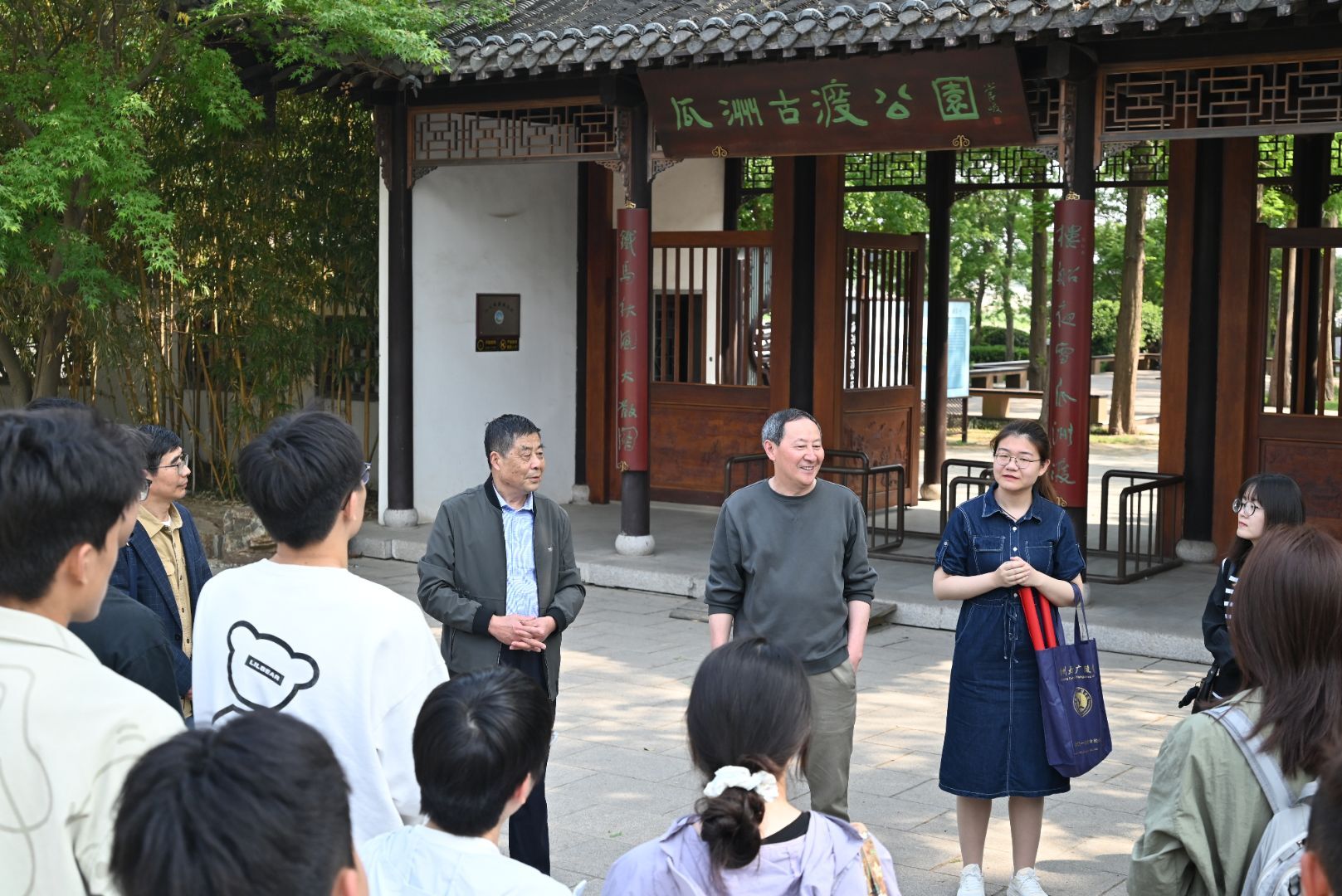 期间,随行的老教师们为同学们答疑解惑。他们结合瓜洲闸实际运行情况,用通俗易懂的语言耐心解答同学们提出的各种问题。同学们围聚在老教授身边积极提问,现场互动频繁,气氛热烈。