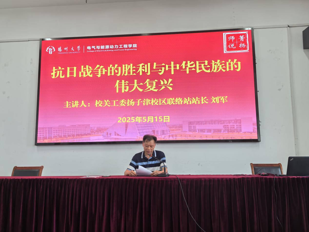 为铭记抗战历史,共话民族复兴。5月15日下午,电能学院在知行楼S533会议室邀请校关工委扬子津校区联络站站长、电能学院结对共建班级指导老师刘军开展主题团课。关工委对接班级测控2301班及学院本学期入团积极分子参与此次团课,团课由院团委副书记金秀平主持。
