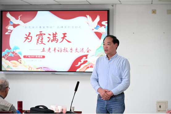 为传承红色基因、激发爱国热情,5月16日上午,新闻与传媒学院关工委结对共建班级广电2301班在荷花池校区教学主楼1113会议室举办了“红色关工委宣传站”品牌系列活动之“为霞满天”五老专访报告交流会。院关工委常务副主任严公宝,院关工委副主任裴家宝、孙放,院党委副书记刘长平,院团委学工办辅导员老师参加活动。