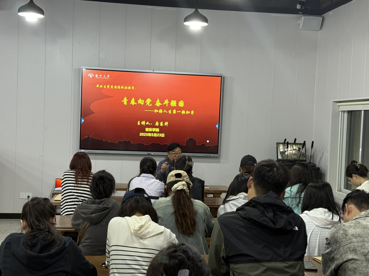 为深入开展毕业生党员思政教育,5月23日,音乐学院党委、关工委邀请扬州大学医学院原党委书记唐尧开展“做人如砚、做事如剑——唐家八姐妹的家风实践与感悟”“青春向党 奋斗强国——扣好人生第一粒扣子”“强化党员意识,增强组织纪律观念”主题党日系列活动,通过专家座谈深入构筑廉洁思想防线。音乐学院党委书记、关工委名誉主任房东升,院副党委书记、关工委主任吴伟,院综合办公室副主任、组织员王一媛以及毕业生党员参加会议。本次活动由房东升主持。