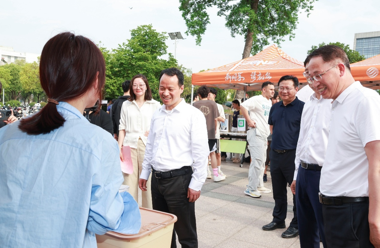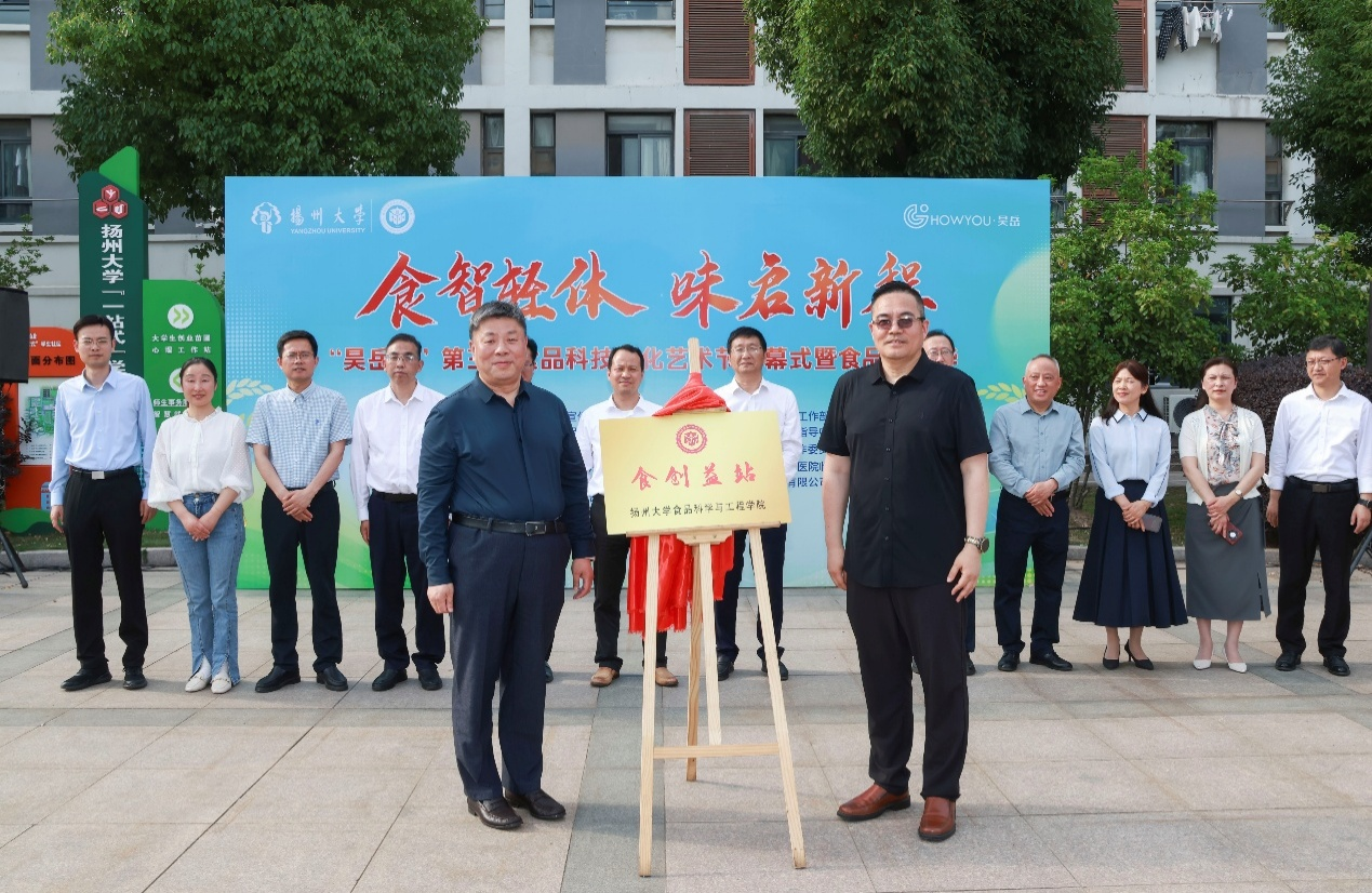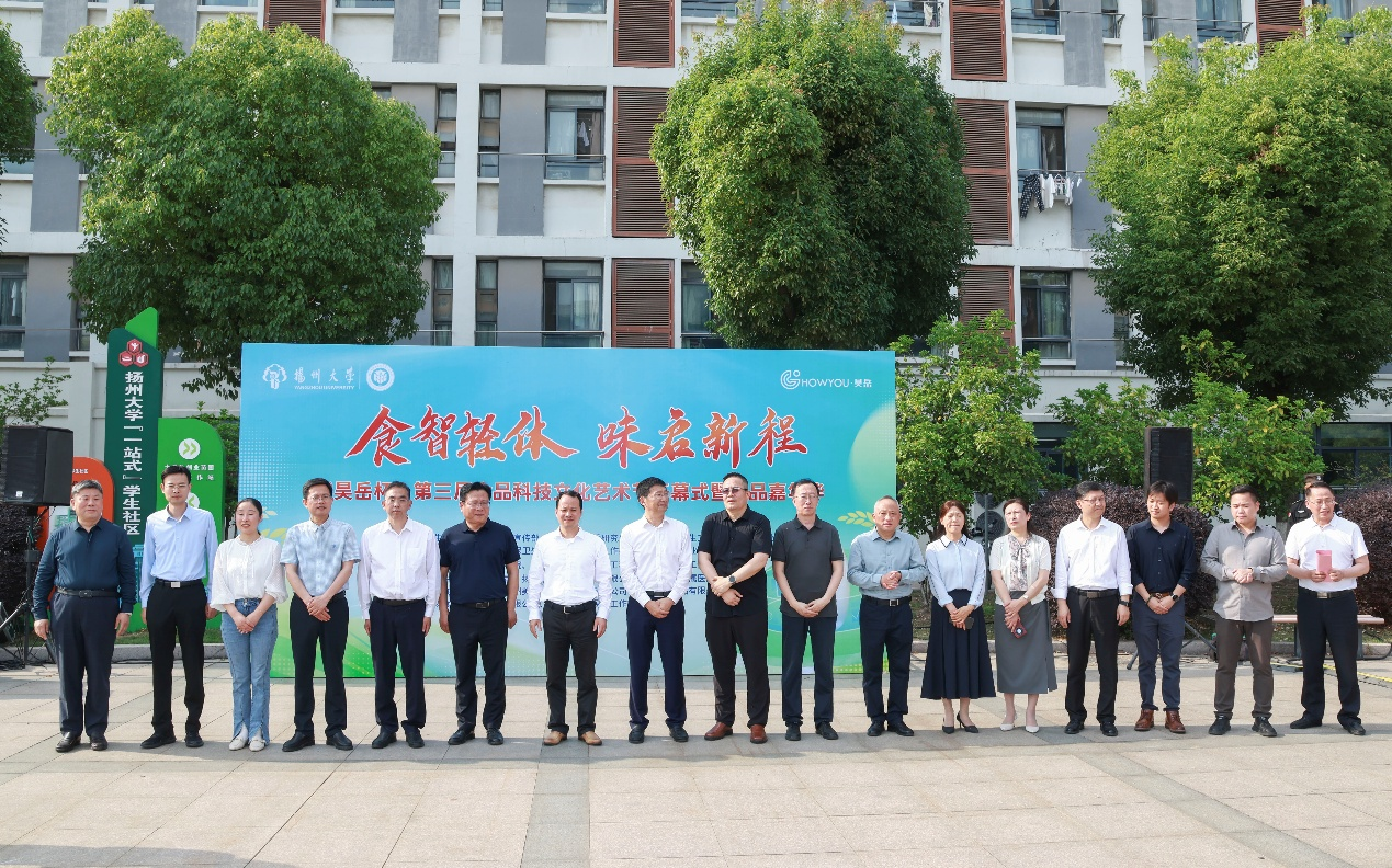 5月14日下午,食品学院关工委在扬子津校区一站式社区南广场举办“食智轻体 味启新程”“昊岳杯”第三届食品科技文化艺术节开幕式暨食品嘉年华活动。校党委常委、副校长王承堂出席活动并宣布艺术节开幕,校党委常委、宣传部部长张信华,校教务处副处长王俊生,校党委研究生工作部部长吴刚,校党委学生工作部(处)副部(处)长毛连军,校后勤保障处副处长张小莲,校党委保卫部(处)副部(处)长郭兆云,校对外联络办公室(校友会、董事会、教育基金会办公室)副主任王秀琴,朗月学生社区党工委副书记、校关工委秘书长兼办公室主任刘汉柏,校团委副书记魏源,校海外教育学院院长周桂生,院党委书记戴世勇、副院长黄玉军等出席活动开幕式。同时,活动还邀请了支持本次嘉年华活动的多位嘉宾,分别是上海昊岳生物科技有限公司总经理、学院99届校友茅凯东,扬州市扬大康源乳业有限公司、扬州大学实验农牧场有限公司总经理郑云,苏州美味跳动品牌管理有限公司总经理殷成,扬州方广食品有限公司副总经理杨伟康,江苏大扬食研室生物技术有限公司总经理张军,扬州大学附属医院营养科主治医师邹蓓蓓等。活动开幕式由院党委副书记杨晶主持。