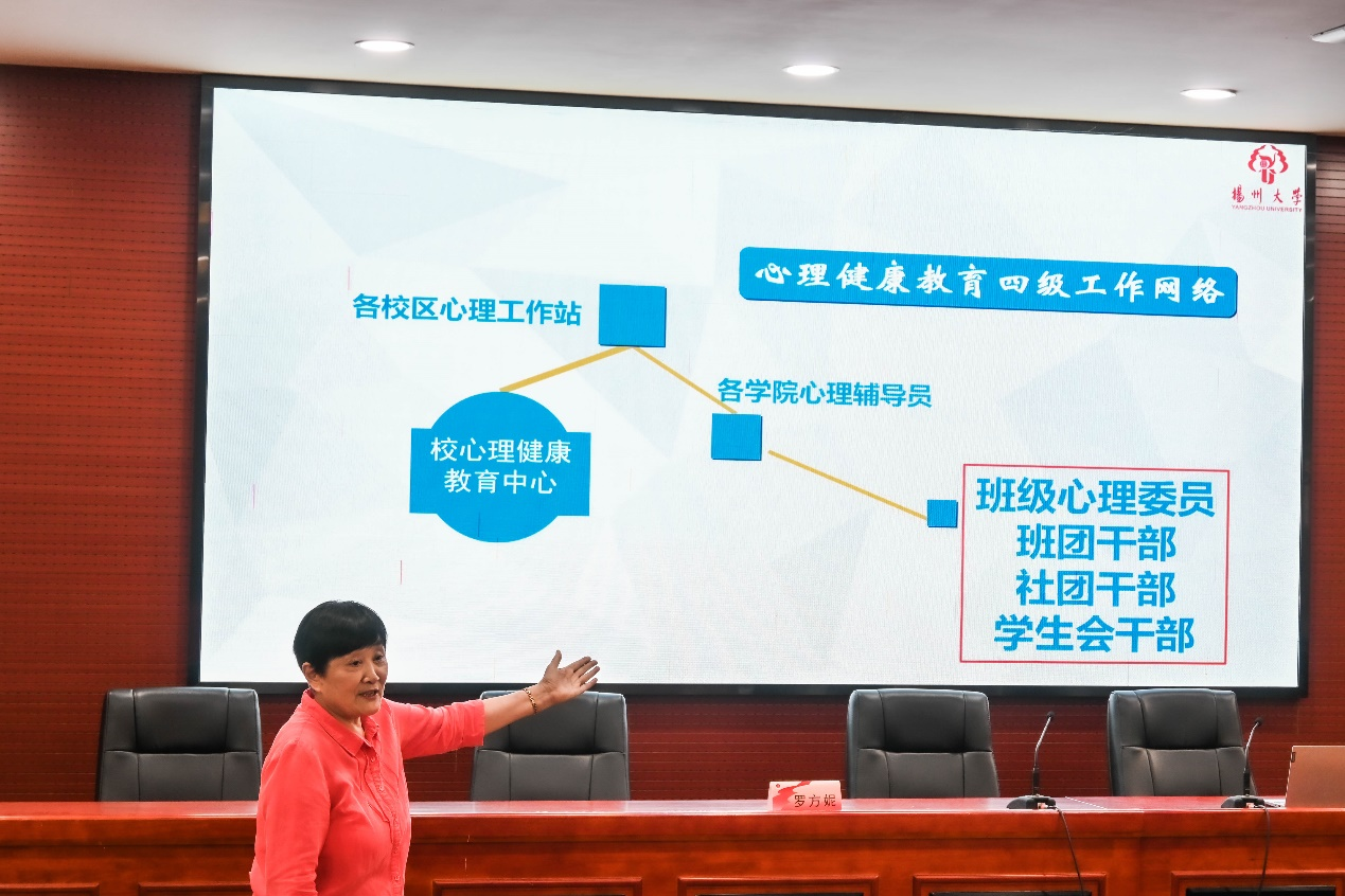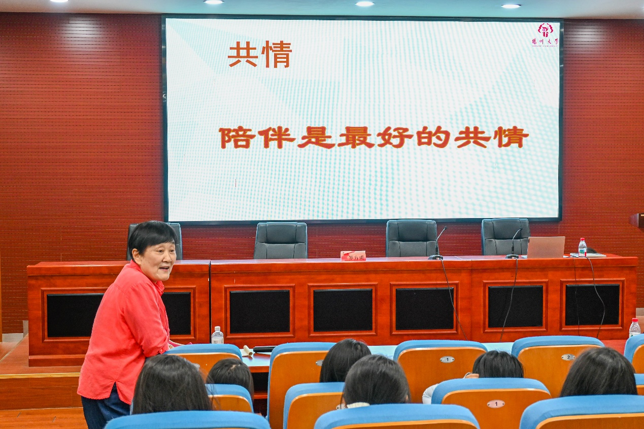 6月4日下午,文学院于瘦西湖校区文科楼中敏报告厅开展2025年第二期“青年马克思主义者培养工程”培训,本次培训以《助人互助,温暖守护——朋辈助人能力提升》为主题,邀请扬州大学心理健康辅导组罗方妮老师担任主讲人。