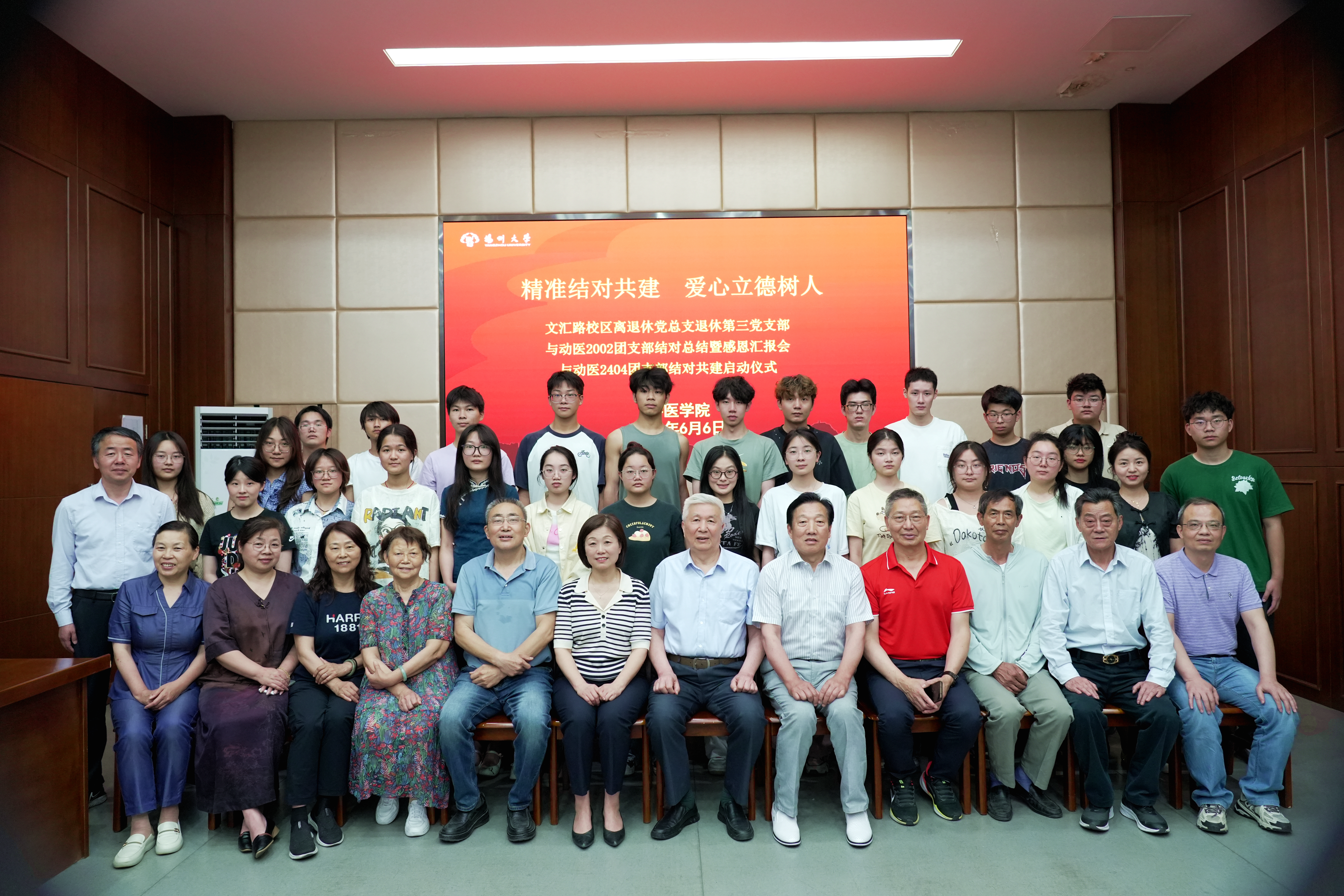 会议最后,所有与会人员合影留念。薪火相传,初心不改;携手同行,未来可期。愿这段跨越代际的共建情谊,继续在传承中焕发光芒,在奋进中书写更多动人故事。让我们共同期待,动医2404团支部在退休老党员们的引领下,赓续荣光,再创佳绩!