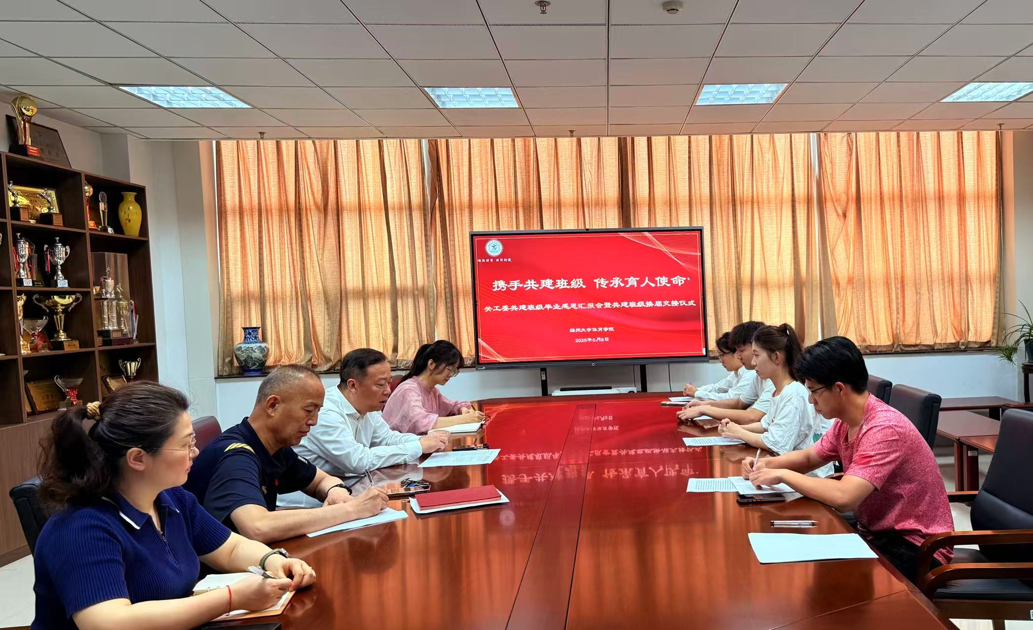6月9日上午,体育学院在文体馆E501会议室举办“携手共建班级 传承育人使命”关工委共建班级毕业感恩汇报会暨共建班级换届交接仪式。院党委副书记、院关工委主任蒋义刚,院关工委副主任高宝龙,院团委书记(学工办主任)、院关工委秘书长滕静,院关工委执行秘书贾明俊,院关工委学生委员张娜以及体育2101班、民体2401班学生代表参加本次活动,活动由院党委副书记、院关工委主任蒋义刚主持。