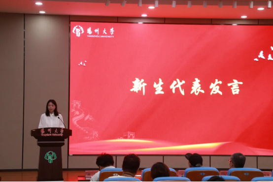 2025级硕士研究生申文璐作为新生代表发言,她围绕如何成为新时代优秀扬大青年,提出了三点思考:一是要以科教之光照亮复兴之路;二是要以探究精神深耕物理之本;三是要以自立品格勇担时代之责。
