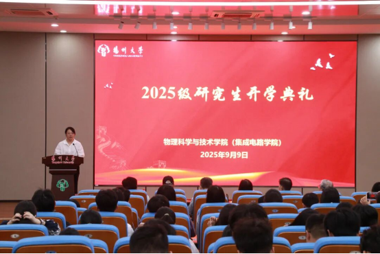 9月9日上午,物理科学与技术学院(集成电路学院)在瘦西湖校区8号楼S405教室隆重举办2025级研究生开学典礼暨“开学第一课”。院党委书记邹明玮,院长涂育松,院关工委常务副主任顾长华,院关工委副主任石竹南、陈庆琉,副院长杨金彭、周敏,各系部主任、院行政、院学工、全体新生班主任以及2025级全体研究生参加典礼。典礼由院党委副书记姚婷主持。