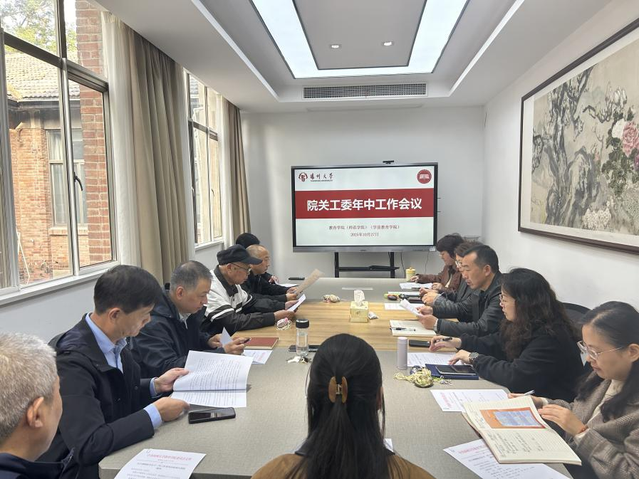 10月27日,教育学院关工委工作会议在瘦西湖校区65号楼二楼报告厅顺利召开。院关工委全体成员出席会议,会议由院党委副书记、关工委主任朱鑫铨主持。