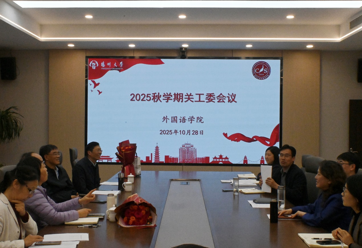 10月28日下午,外国语学院在笃行楼N423会议室召开了2025年度秋学期学院关工委工作会议。校关工委副主任、院关工委常务副主任赵春丹,院关工委副主任刘胜乐出席会议。会议由院党委副书记、关工委主任王晖主持。