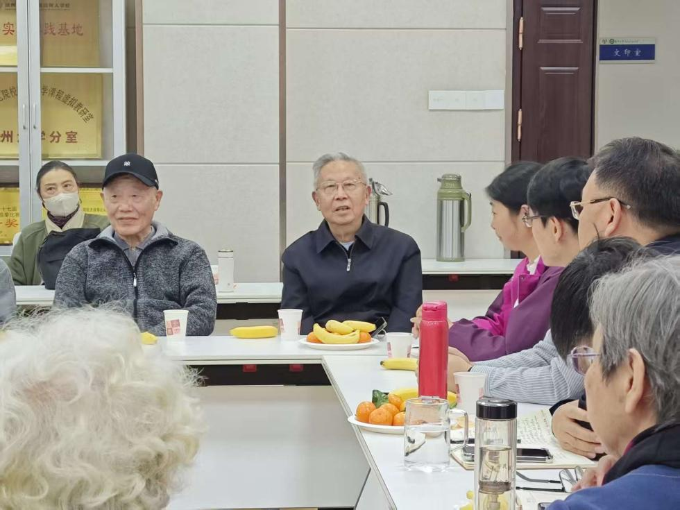 在讨论与交流环节,退休教师们畅所欲言,气氛热烈。院关工委成员徐永泰老师对学院关工委工作给予高度肯定,建议进一步加强与退休教师的联动,让“传帮带”精神持续传承;冷宗周老师结合自身工作经历回顾学院发展历程,并衷心祝愿学院在“十五五”期间把握发展机遇,在学科建设与人才培养上实现新跨越;多位各学科退休教师代表、实验中心原主任也分别结合专项工作与专业领域发言,从学科方向凝练、实验教学资源优化、青年教师培养机制完善等方面提出了建设性建议,为学院未来发展提供宝贵参考。