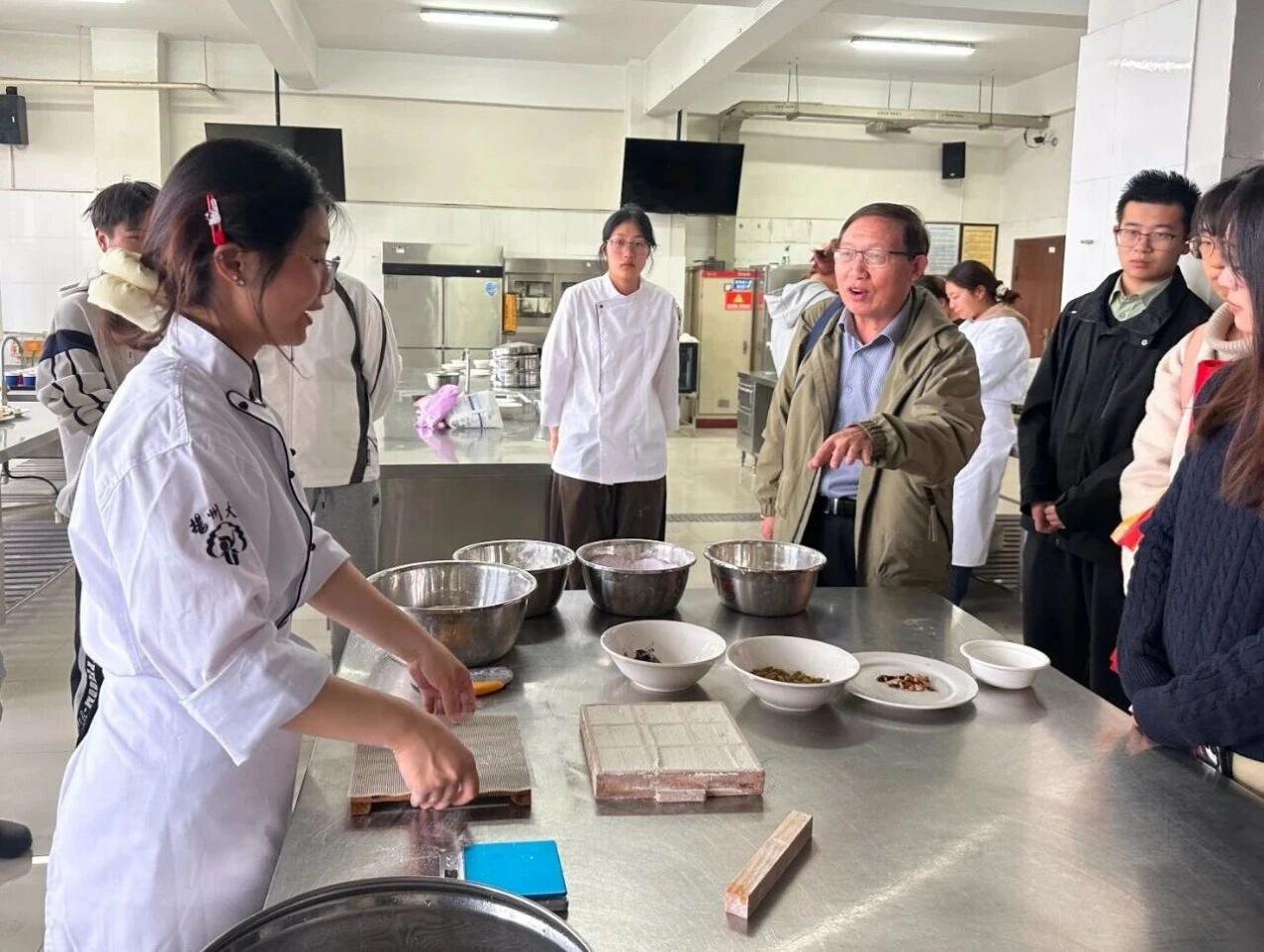 10月29日,旅游烹饪学院于笃行楼E407开展“情暖重阳,食韵传承”老少共建活动,本次活动由院关工委执行秘书王丽琼主持。盐阜路离退休党总支第一党支部书记沈桂林、院关工委委员马健鹰、吴东和老师受邀出席本次活动。2023级共建班级和2025级少数民族青年学生参与。
