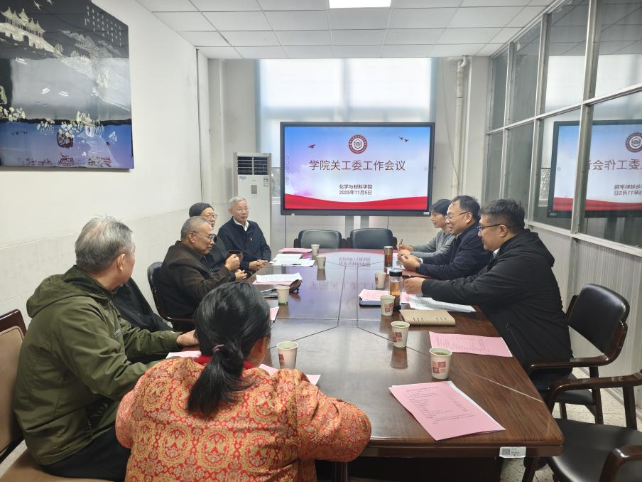 11月5日上午,化学与材料学院在新化馆S202会议室召开2025年秋学期关工委工作会议。院关工委名誉主任、党委书记娄金海主持会议。院关工委主任、党委副书记徐玉,副主任、副院长徐琴,常务副主任周建兵,兼职组织员刁国旺,成员徐永泰、阚锦晴、张国林,秘书长、团委(学工办)书记(主任)陈婷婷出席会议。院关工委执行秘书郑梦娟参会。