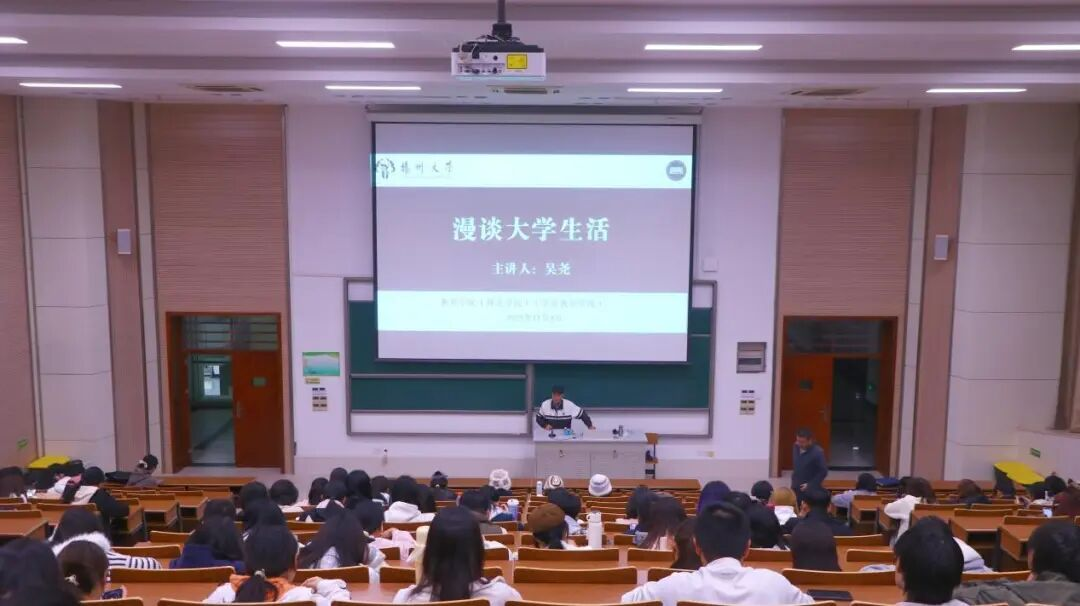 为帮助新生同学们更好地适应大学生活,做好四年的学习与生活规划,我院于11月4日在扬子津校区E206教室举办“漫谈大学生活”主题讲座。本次活动主讲人院关工委常务副主任、瘦西湖校区离退休第一党支部特别党小组成员吴尧老师为同学们带来一场兼具深度与实用性的分享,助力大家明晰方向。辅导员李文超老师和学生助理陈秀文在现场组织听讲。