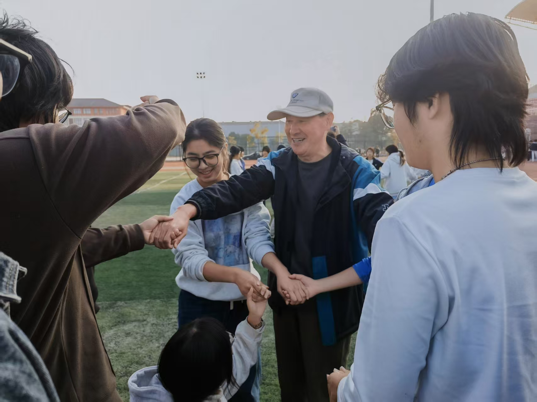 为促进大一新生心理健康发展,提升心理韧性与团队凝聚力,11月14日,由学院关工委联合旅游与艺术系心理协会共同举办的户外心理团辅活动在学校操场温情启动。本次活动以“老少同心助成长,团结协作育新苗”为主题,由院关工委副主任储诚明老师主持,通过一系列体验式团体活动,帮助新生在互动中融入集体,在协作中建立信任。