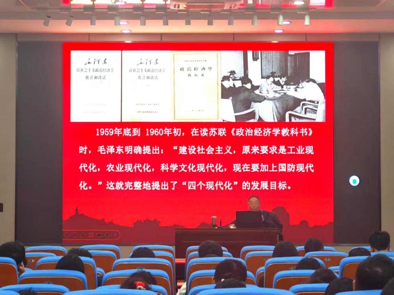 费迅老师紧扣“理想、担当、吃苦、奋斗”四大核心,结合中国现代化建设的历史脉络与时代要求展开宣讲。从早期先辈倡导工业化以求民族自存,到历代领导人提出的“四个现代化”“中国式现代化”等发展目标,再到新时代强国建设、民族复兴的使命任务,费老师系统阐释了中国式现代化的历史演进与核心要义,同时明确了新时代好青年的成长要求,强调青年要坚定信念、厚植情怀、锤炼品德、增长见识,在科技创新、乡村振兴等领域勇担时代责任。