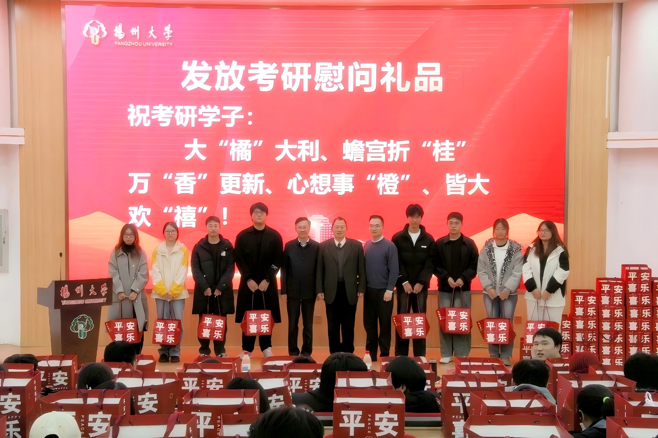 随后,全体考研学子进行考研誓师宣誓。宣誓结束后,院关工委名誉主任施林峰老师、院关工委主任崔益军老师、院关工委常务副主任黄祖六老师及辅导员老师为全院考研学子赠送考研慰问礼品。